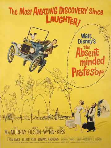 After the success of the 1959 release The Shaggy Dog, Walt Disney aspired to make more comedies for the whole family to enjoy and began a search for stories with unusual, family-friendly plots. He acquired the rights to two of Samuel Taylor’s short stories which featured a professor who creates loads of new inventions. One story was about rubber and another was about a flying car; inspired by these stories the writers at The Walt Disney Studios created The Absent-Minded Professor.