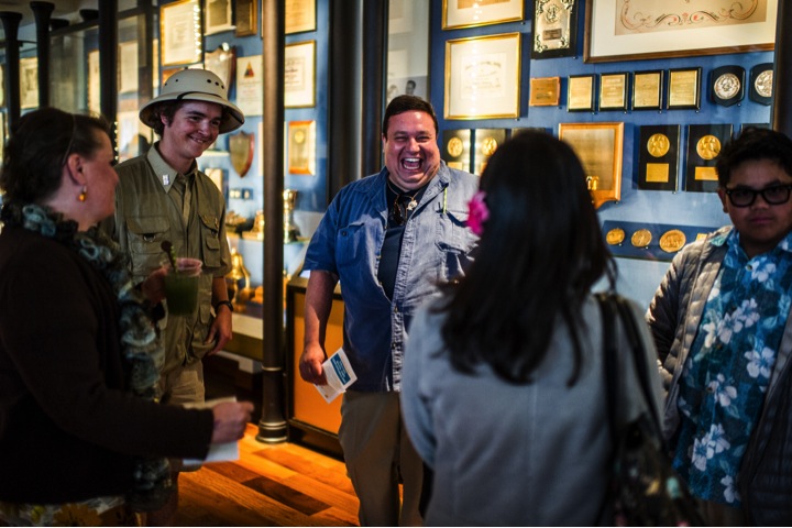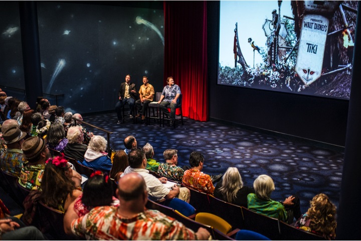 Party-goers enjoyed special Jungle Cruise-style tours of the galleries and a tiki-themed photobooth. In the theater, Garner Holt and Bill Butler from Garner Holt Productions were joined by famed Disney artist Kevin Kidney for a discussion on Walt Disney's Enchanted Tiki Room.