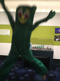[Video courtesy of ABC7 News. Image above: Gumby hops through Between Frames; image courtesy of The WDFM Security Cameras.]