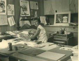 Mary left Disney in 1953 to freelance. She worked again with Walt on it’s a small world for the 1964-1965 New York World's Fair. She created her designs by using collages of wallpaper clippings, plastic wrap, and acrylics. When the attraction was brought to Disneyland in 1965, she created the distinctive kinetic facade and clock tower. Her next adventure with Walt was designing and creating the murals for Disneyland's Tomorrowland made of ceramic tiles. She also created a special ceramic tile mural for Walt, as a gift for the pediatric waiting room at the Jules Stein Eye Institute at UCLA.