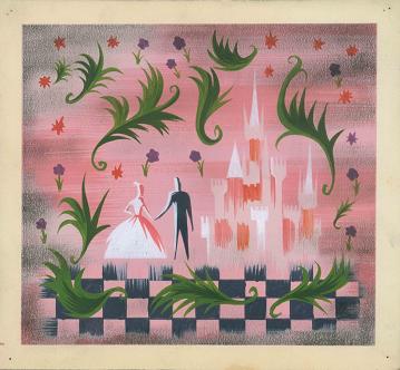 The main thread of the story was unmistakably romantic. One of the devices suggested by the writers is particularly striking today: at the ball, as Cinderella danced with the Prince, the palace background would fade away and the lovers would appear to be dancing on the clouds, oblivious to their surroundings. Studio artists responded enthusiastically to this idea; effects-animation wizard Cy Young offered some ambitious ideas for effects that would transform the dream cloudscape into a spectacularly beautiful setting for the dance. Other writers and artists chimed in with ideas of their own, rich in cartoon gags but also long on charm and atmosphere. Today these suggestions are preserved in a thick file at the Walt Disney Archives.