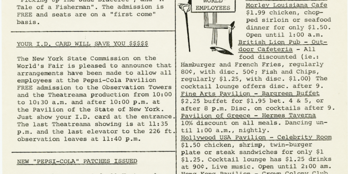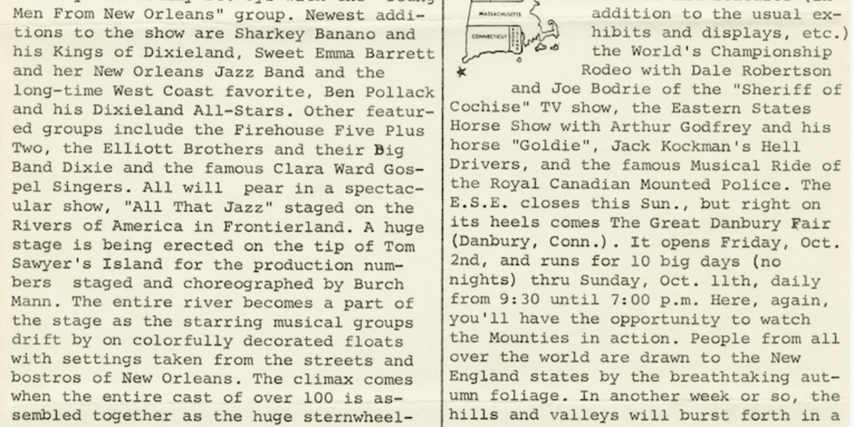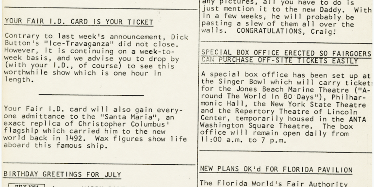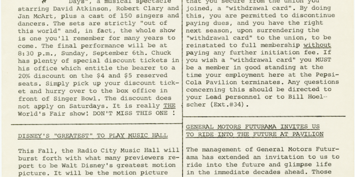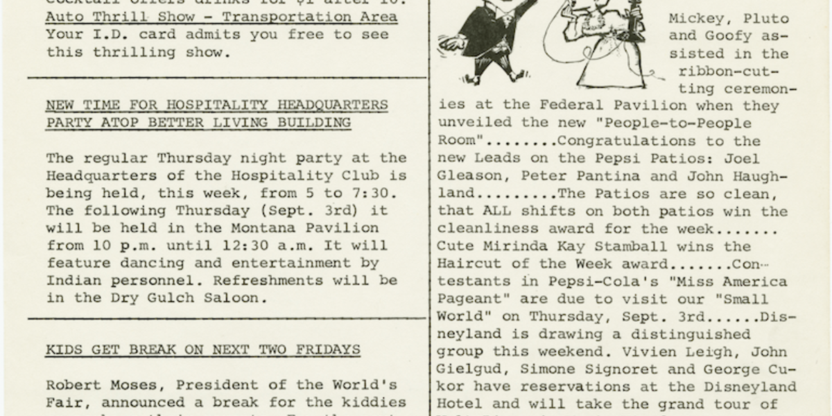 That’s why I love reading these newsletters from the original it’s a small world exhibit at the 1964/65 New York World’s Fair. I feel like a time traveler visiting those cast members who helped guide the world’s experience of this iconic attraction for the first time. Here you’ll find the results of a pigtail contest, a birth announcement, which side of the costume Pepsi-Cola name tags were to be worn, news about Mary Poppins(just before its spectacular premiere in theaters), and an invite for small world cast members to preview another famous Walt Disney fair exhibit, Great Moments with Mr. Lincoln