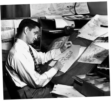 Best known as one of Disney Animation's "Nine Old Men," John Lounsbery’s talent was recognized by one of his instructors at the Art Center School of Design, Pasadena, who pointed him in the direction of the Walt Disney Studio. He joined Disney in 1935 and assisted Norm Ferguson on the hag in Snow White and the Seven Dwarfs, then worked under Ferguson’s supervision on the Fox and Cat in Pinocchio. By 1941, Lounsbery was an animation director, working on such films as Dumbo, Song of the South, Lady and the Tramp, Sleeping Beauty and many more. He was responsible for animating such memorable characters as Dumbo, the mice in Cinderella, the Cheshire Cat in Alice in Wonderland, and Captain Hook in Peter Pan. Lounsbery had the distinction of being a member of the Nine Old Men. He never left the Disney studio; his career there spanned 41 years, and he died during production of The Rescuers. He married Florence Hurd in 1935 and had three children.