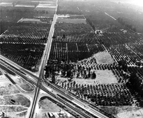 Anaheim aerial photograph, c. early 1950s; Courtesy of the Anaheim Public Library, photograph collection on Anaheim local history