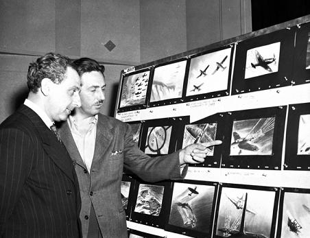 Images above: 1) © Disney 2) Alexander de Seversky (left) and Walt review storyboards for Victory Through Air Power. © Disney
