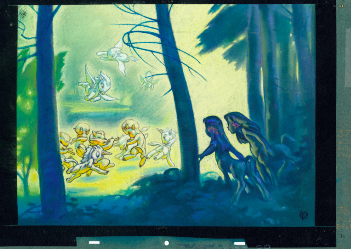 Unfortunately, these hearty designs did not translate to the screen. Time magazine, in an otherwise complimentary Fantasia cover story (November 18, 1940), complained about “calf-eyed centaurs” who make “Bacchus’ bacchanale look like a nursery lemonade party.”