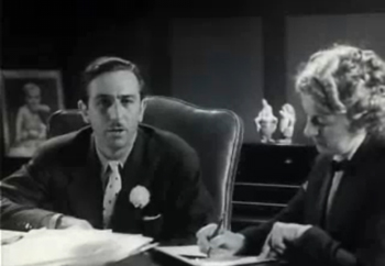 [Images above: 1) Walt and his first secretary, Lillian Bounds, on Kingswell Avenue c. 1925. ©Disney. 2) Carolyn Kay Schafer, 1934, from a profile in American Magazine. 3) Walt and Dolores Voght Scott in a frame from the 1937 short film, A Trip Through The Walt Disney Studios. © Disney. 4) Walt and the “sassy” Tommie Laurine Blount Wilck, c. 1966. © Disney. 5) Lucille Martin (left), c. 2005. “DOWN WITH SIR” protest drawing by Walt Disney. © Disney.]