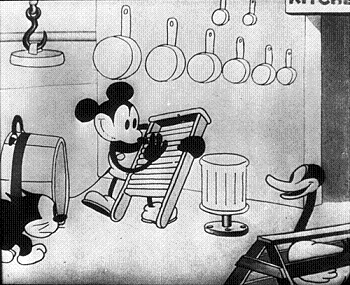 Steamboat Willie was different. It was Walt Disney’s first sound film, and it marked a significant advance over the sound cartoons made by other producers. Walt and his team hadn’t just tacked a soundtrack onto their film; they had planned Steamboat Willie as a sound film from the ground up, with comedy business that used sound effects and music in an integral way. The result was a fresh, original cartoon with clever musical gags. It culminated in Mickey’s makeshift performance of “Turkey in the Straw” on the deck of the boat, using livestock and kitchen utensils as his “instruments.” It was a star-making performance.