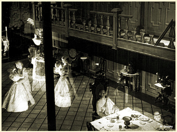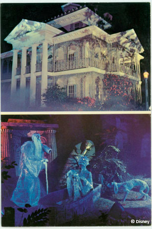 "Pepper’s Ghost" is an illusion is one you can use in many, many ways. The way we used it is the Haunted Mansion's ballroom sequence. Prior to the ride, we designed separate rooms like little theaters, so you would be working your way through the Haunted Mansion, accompanied by a Ghost Host (you wouldn’t see him, just hear him), but he would take you through the rooms and through the scenes.