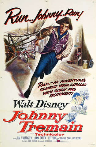 In 1957, Disney released the Johnny Tremain movie, a live-action adventure starring Hal Stalmaster and directed by Robert Stevenson—later to helm Mary Poppins (1964). Based on the fiction novel by Esther Forbes, it told the story of a teenage Boston silversmith who becomes caught up in the American Revolution—meeting Paul Revere and Samuel Adams, among others, and participating in the Boston Tea Party and battles at Lexington and Concord.
