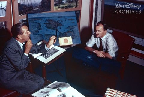- Walt Disney and Peter Ellenshaw in front of production art, Johnny Tremain (1957); courtesy of the Walt Disney Archives Photo Library; © Disney