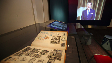 The notebook can be seen on display in the gallery that is devoted to the art and production of the animated features released in the early 1940s. The notebook is accompanied by a unique interactive touch-screen display on which visitors may scroll through and zoom in on each of its eighty oversized pages. The interactive display includes video clips that correspond with the moments referenced by Schultheis in the journal.