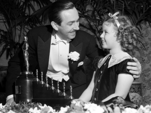 Celebrated child actress Shirley Temple was selected to present the award to Walt onstage at the Oscars. Though Walt maintained that he didn’t make films solely for young audiences, it was felt that child actress Shirley Temple was the perfect person to represent the vast population of Walt’s young fans and admirers.