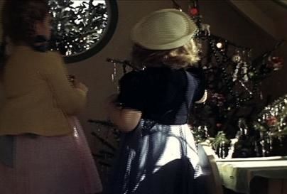 On the first Christmas, the tree was enormously tall. It was hung with assorted glass ornaments, colored lights, and a liberal amount of tinsel icicles. Of course I don't recall this, but dad's camera recorded it, panning from the top of the tree down to one-year-old me at the bottom, a bit baffled by it all, but curious, sitting amidst an array of wind-up toys.