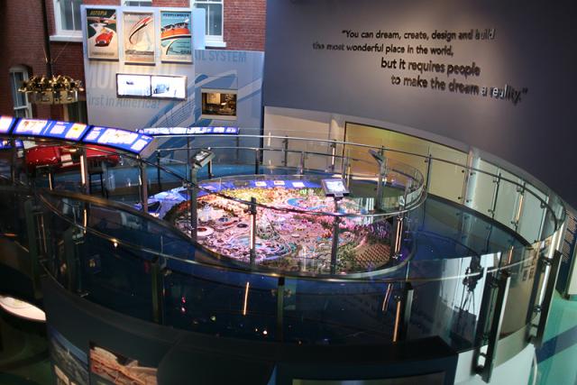 Our amazing model of Disneyland was built by Kerner Optical in San Rafael, California, a former division of George Lucas' Industrial Light and Magic. It was completed and installed in Gallery 9 before the completion of the reading rail.