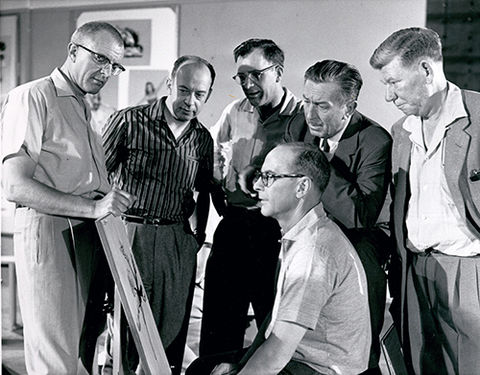Walt Disney’s famed Nine Old Men were among the creative geniuses behind our most beloved Disney animated films. These talented artists were considered by Walt to be his most trusted and gifted collaborators, and he held each of them in the highest esteem. By the time the Nine Old Men (then ironically quite young) found their way to The Walt Disney Studios, Walt had long left his own animation days behind, but always retained a keen eye for exceptional talent, and recognized this in each of the nine.  Individually, they were men of varying talents and vastly different personalities, each bringing their own unique and valued skillset to enhance Walt’s unparalleled storytelling. Together, the nine worked as a cohesive unit, turning out classic and beautifully animated characters that will continue to be remembered and revered for years to come. Arguably, one of the most legendary (and possibly the most infamous) of the nine was the master draftsman, Milt Kahl. With the exciting presentation of The Walt Disney Family Museum’s special exhibition of Wish Upon a Star: The Art of Pinocchio, we turn our attention to Kahl, the sometimes irascible yet always supremely talented artist behind the design of the lovable little puppet.
