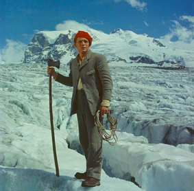 The arduous filming lasted a total of three months. The shooting schedule in the Alps alone spanned several months, allowing the crew to experience the cycle of the seasons. “We went from full snow to bare hillsides,” recalled Annakin. At one point, climber Gaston Rebuffat and a camera team filming the Alpine scenes spent eight hours—then the longest recorded stay—on the summit of the treacherous Matterhorn. Since the Matterhorn must be climbed in daylight and the round trip normally takes six to eight hours, Disney’s intrepid camera crew left a halfway-hut at dawn and completed the last hour of their descent in dusk. Making the feat even more impressive, each of the ten men was burdened with a 60-pound pack containing cameras and other movie gear. “I have never seen anything like it,” admitted veteran Swiss guide Adold Schaller. “It was impossible, but they did it.”