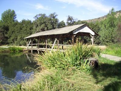 The first movie that was filmed on the ranch after Disney purchased it was Toby Tyler, or Ten Weeks with a Circus in 1959. When the set design called for a wooden bridge to be built over the ranch’s creek, Walt insisted that it be built to modern highway standards. Walt’s attention to detail and quality construction continues to pay off as the structure still known as the “Toby Tyler Bridge” continues to be used by the ranch staff and production companies to this day. Countless film and television programs, not only by Disney, but for many other television and film companies have been filmed at the Ranch over the years. The beautiful Spanish hacienda from the 1961 film The Parent Trap used to sit on the shore of the pond that Herbie skimmed across in the 1969 film The Love Bug. The dirt roads that wind through the oak-lined meadows were once used as the road to the town of Passamaquoddy in Pete’s Dragon (1978)—as well as the road that the General Lee would race down in The Dukes of Hazzard television series. The landmark covered bridge over the pond was constructed in 1962 and can be seen in numerous Disney film and television shows ranging from 1966’s Follow Me, Boys! to the modern day ABC hit Desperate Housewives.