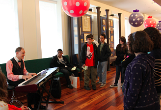 ROD MILLER - From Main Street U.S.A. to The Walt Disney Family Museum, ragtime jazz pianist Rod Miller entertained the crowds--outside on the porch, and in the Museum's Lobby--throughout the 3-day celebration. He took requests, played classic Disney favorites, including "When You Wish Upon a Star," told behind-the-scenes stories of the happiest place on earth, and even made up a few renditions of his own--including "I Left My Heart in Hawaii (because San Francisco is too cold)!"