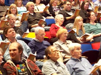 Member Appreciation Month started with the first ever Sing-Along in the Theater. Our Members and their guests enjoyed singing along to Disney movies and cartoons that were shown during the first two years in our theater. There was a yummy intermission with a dessert buffet, plus great prizes including a huge chocolate basket from Ghirardelli, tickets to Disneyland, tickets to the December 10 program, and a poster signed by the Miller Family children.