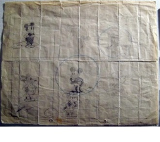 To make matters more complicated, we know that not every flaw should be repaired because marks and damage could be an indication of how the object was used, or even more importantly, could offer proof of its originality. Take for example the earliest known drawing of Mickey Mouse, now part of the Walt Disney Family Foundation collection. When observed under light coming from a low-angle source, as seen in the image below, numerous folds and creases are revealed. It is said that Walt Disney often folded notes and drawings to carry in his shirt pocket. Those folds could easily be the evidence that this drawing is connected to the development of a new character, now known as Mickey Mouse. We obviously accept those creases and let them become part of the history and aesthetic of the object.