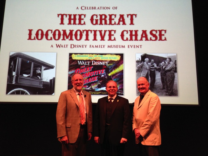 After watching the classic Disney film that became more meaningful and exciting due to the comments of the speakers and listening to stories about the making of the film, the audience was sorry to see the program end. But Campbell was prepared for even that and kept spirits high with the announcement that each person would be given a pack of miniature lobby cards from The Great Locomotive Chase upon exiting the theater and that a special holiday train show would be on display in the Diane Disney Miller Exhibition Hall from November 11 to January 26, 2015.