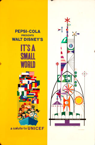 Promotional material for UNICEF Pavilion featuring Walt Disney’s “it’s a small world” (sponsored by Pepsi-Cola) at the 1964/65 New York World’s Fair; collection of The Walt Disney Family Museum, © Disney