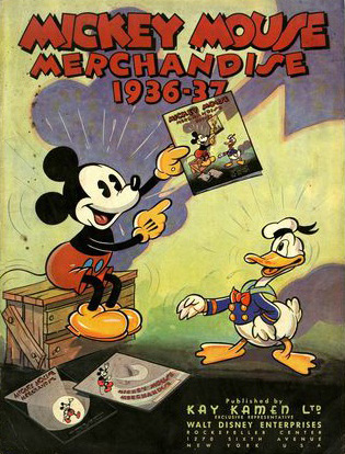 Kamen wasted little time realizing his vision. Soon Mickey and Minnie could be found in department stores everywhere, adorning such products as: napkins, wallpaper, books, phonographs, all types of clothing, hairbrushes, toys, and much more. Mickey products extended beyond the store shelves as well, thanks to annual, then biennial, merchandise catalogs published by Kamen.