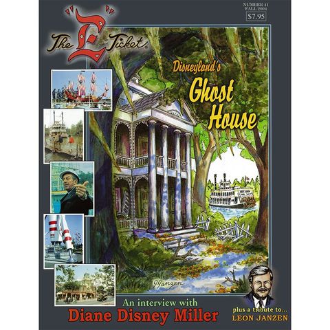 This issue features an interview with museum co-founder Diane Disney Miller, a remembrance of the late original Co-Editor of The “E” Ticket Leon Janzen, and how Disney Legend Ken Anderson’s concept for the “Ghost House” became the Haunted Mansion.