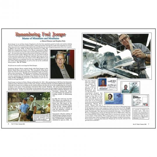 In this issue: A tribute to model-making Imagineer Fred Joerger and a look inside WED Enterprises’ model shop with Imagineer Harriet Burns.