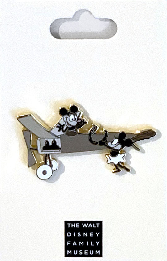 Exclusive to The Walt Disney Family Museum, this pin features vivid black-and-white imagery of Mickey and Minnie from the 1928 animated short Plane Crazy.